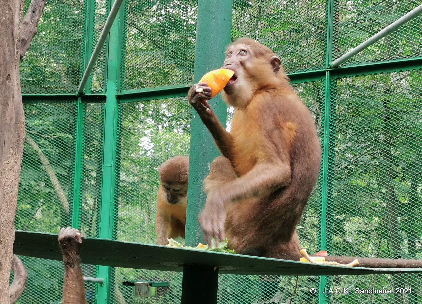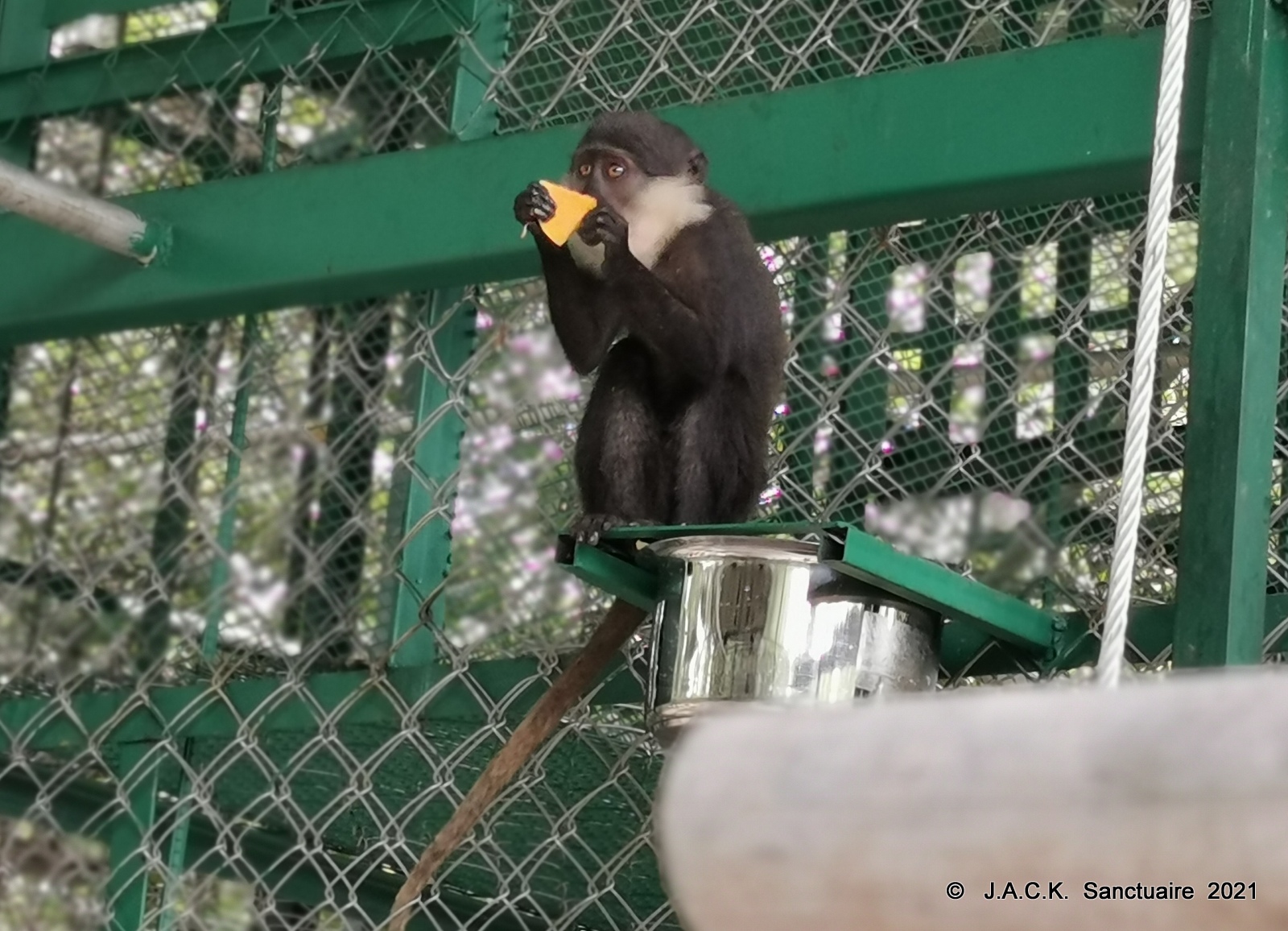 The new residents of J.A.C.K. are mainly Cercocebus and Cercopithecus monkeys. There are only a few young adults – the majority counts plenty of youngsters.