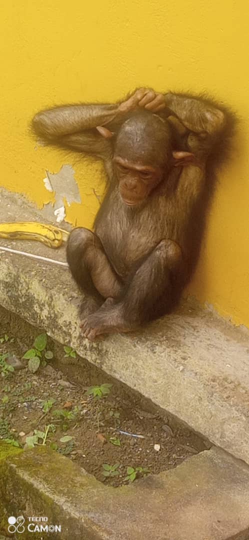 Together we will do everything possible to save the chimpanzees. They are a collateral damage to bushmeat poaching. Having watched their families killed for bushmeat, they were then captured and held captive, waiting to be sold as pets.