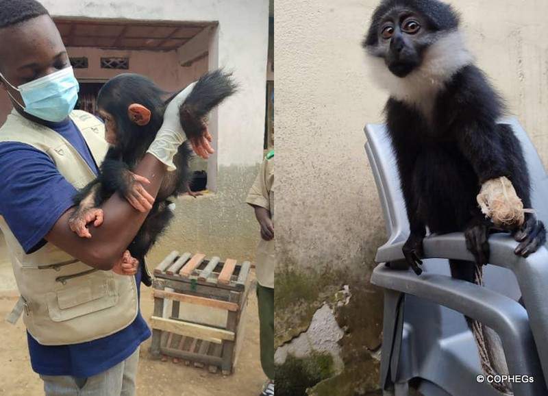 Thanks to all those who were involved in this latest rescue. Thanks also to the COPHEGs team for its various interventions during the transfer of these two young primates.