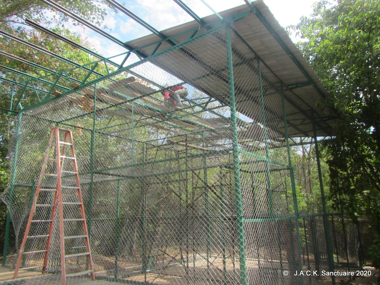 Thanks to the great kindness and trust of wonderful people and organizations, our sanctuary has managed to build 2 of the 4 satellite cages. More works are on progress as we also need a small kitchen, water, electricity, jungle gyms, etc.